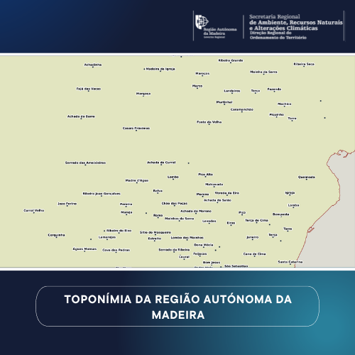 A Toponímia encontra-se no anexo I da Diretiva, determinando que são dados considerados de referência. Este tema é utilizado como enquadramento espacial para identificação de localizações geográficas, e também para interligar outras informações que pertencem a domínios temáticos específicos, como o ambiente, os endereços, zonas de gestão, entre outros. A toponímia oficial da Região Autónoma da Madeira, é constituída por cerca de 2000 pontos que assinalam topónimos tais como sedes de concelho e de freguesia, sítios e lugares, designações locais, toponímia de arruamento e toponímia de hidrografia. Este conjunto de dados integra os Conjuntos de Dados de Elevado Valor/HVD identificados de acordo com o Regulamento de Execução n.º 2023/138 da Diretiva (UE) 2019/1024, relativa aos dados abertos e à reutilização de informações do setor público.